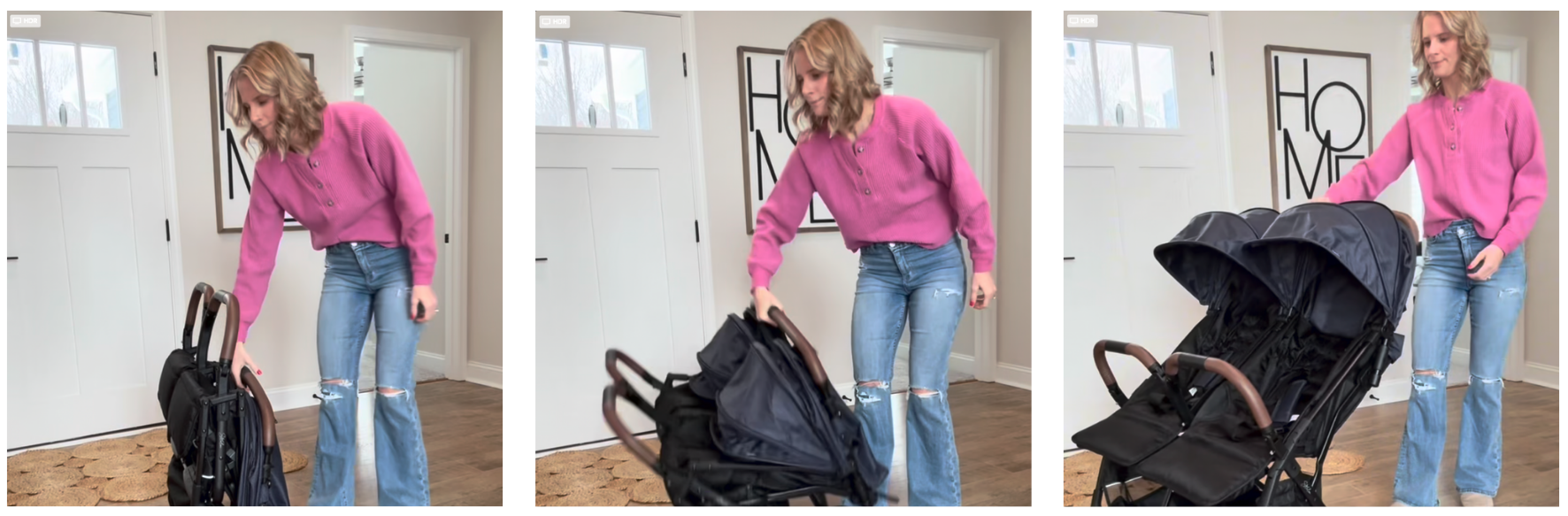 The Strolee Double opens effortlessly with just one hand. Simply lift the handle from the folded position, and the innovative mechanism does the rest - you'll hear a reassuring click when it's fully opened and secured.