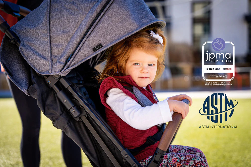 Strolee strollers have undergone rigorous testing and certification to meet the highest standards of safety and quality. Certified by the Juvenile Products Manufacturers Association (JPMA) and compliant with ASTM International's stringent certification processes, each Strolee stroller ensures peace of mind for parents.